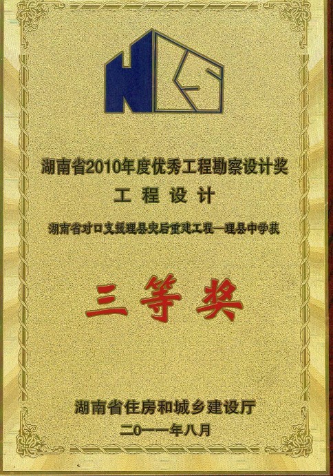 湖南省優秀設計表揚金獎(1984)