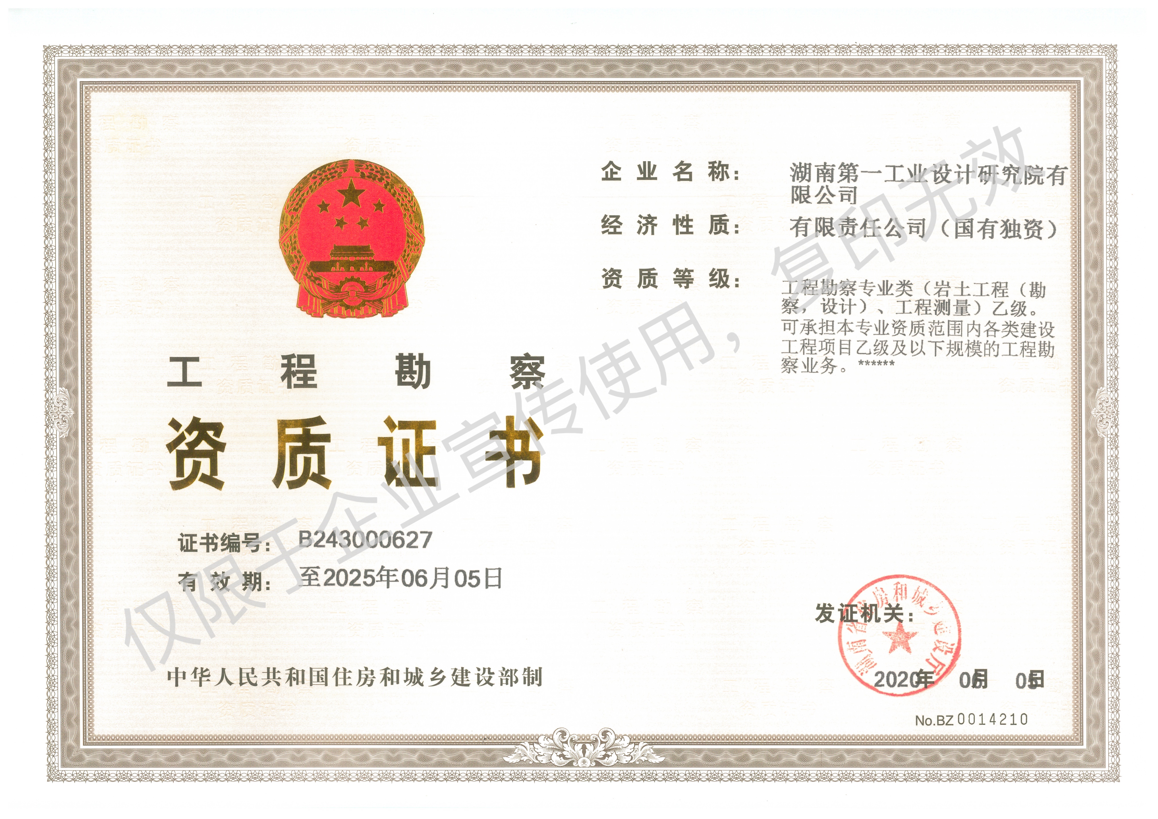 工程設計乙級資質證書